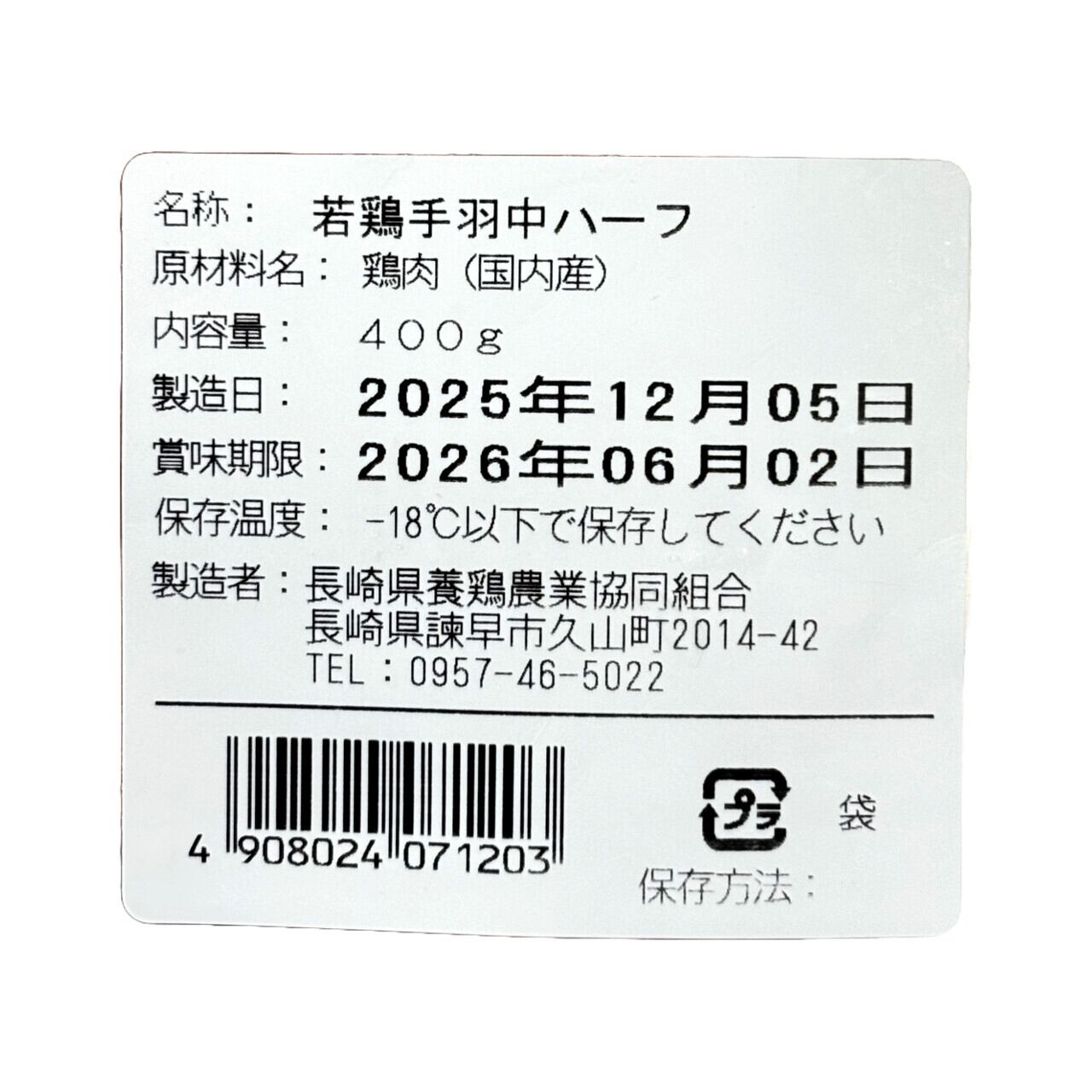 長崎ばってん鶏 若鶏手羽中ハーフ 400g